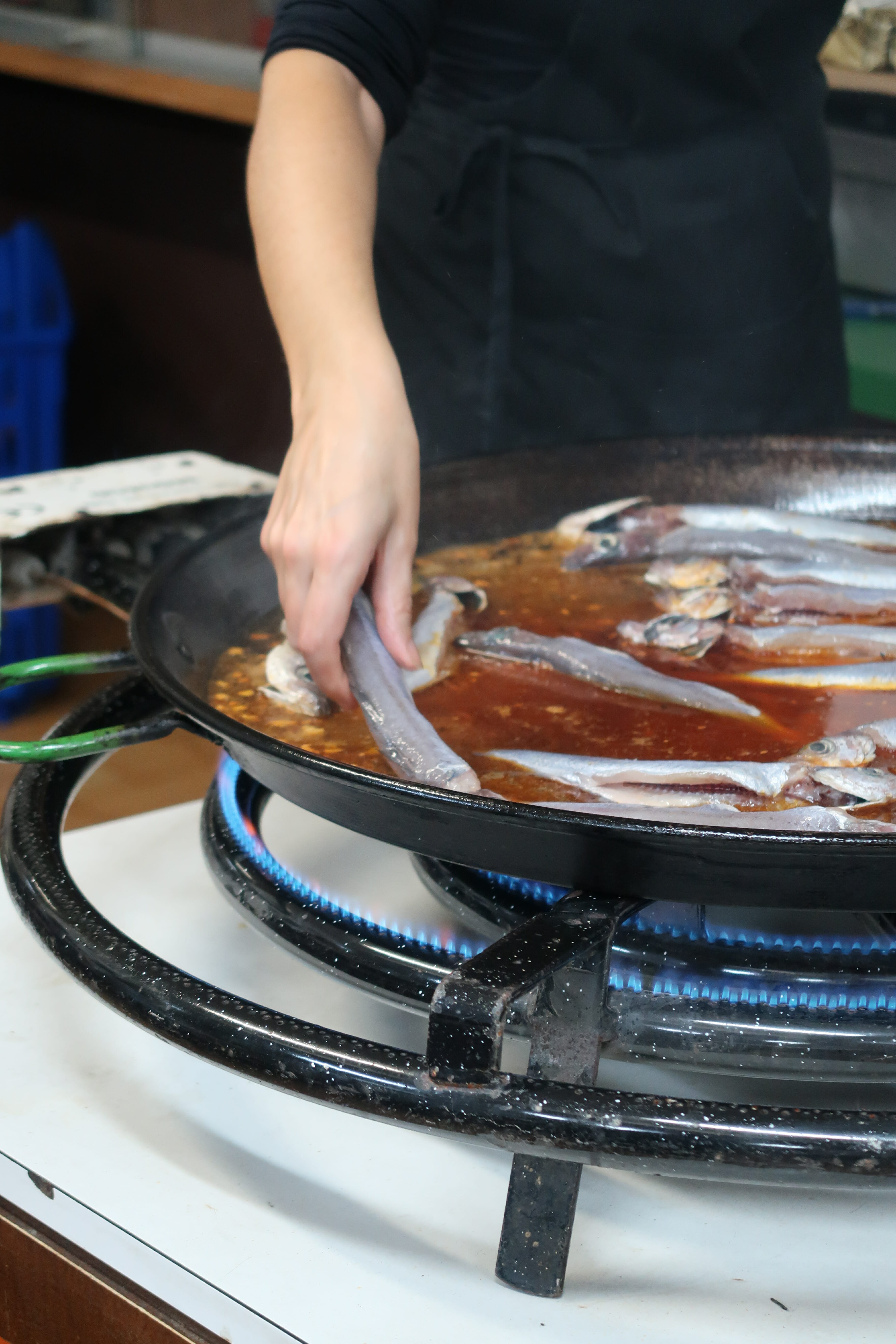 Y a los más curiosos, os dedico esta lista de peces de proximidad que Marina compra a los pescadores de la Barceloneta, apuntad: gat, bisu, rata, canana, brótula, sarg, esparrall, malarmat o arnés, viret, pagell, cinta, moixina, etc. Todo esto lo estamos perdiendo por el camino debido a desconocimiento por un lado y a la falta de comercialización por el otro. Recordadlos por favor, de esta manera colaboramos un poco todos al no olvido.
